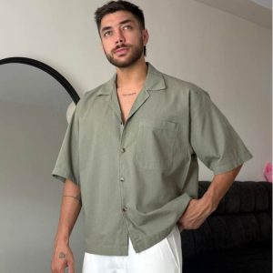 پیراهن لینن باکس ساده